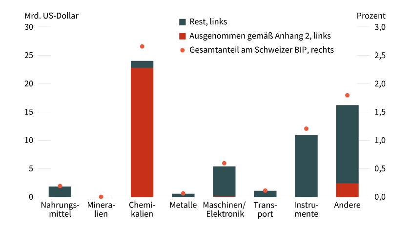 Das Basisszenario dürfte weiterhin sein, dass letztendlich ein Deal erzielt wird. Mit jedem Tag, der ohne eine solche Vereinbarung vergeht, dürfte aber auch deutlich werden, dass das für die Schweiz erheblich teurer werden dürfte. Langfristig gesehen ist das ein schlechtes Zeichen für die Schweizer Volkswirtschaft, kurzfristig hilft zumindest, dass es momentan noch Ausnahmen auf Pharmaprodukte gibt (siehe Grafik 1). Zwar hat der US-Präsident auch hier zuletzt Zölle in Höhe von 100 Prozent angekündigt, sie aber wieder verschoben. Ein Teil der Schweizer Pharmaindustrie dürfte auch nach Zöllen auf Pharmaprodukte weiterhin von Ausnahmen profitieren. Diese Ausnahmen (in Verbindung mit den weiterhin soliden fundamentalen Faktoren) sind vermutlich einer der Gründe, warum sich der Schweizer Franken zuletzt wieder stabilisiert hat.