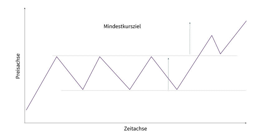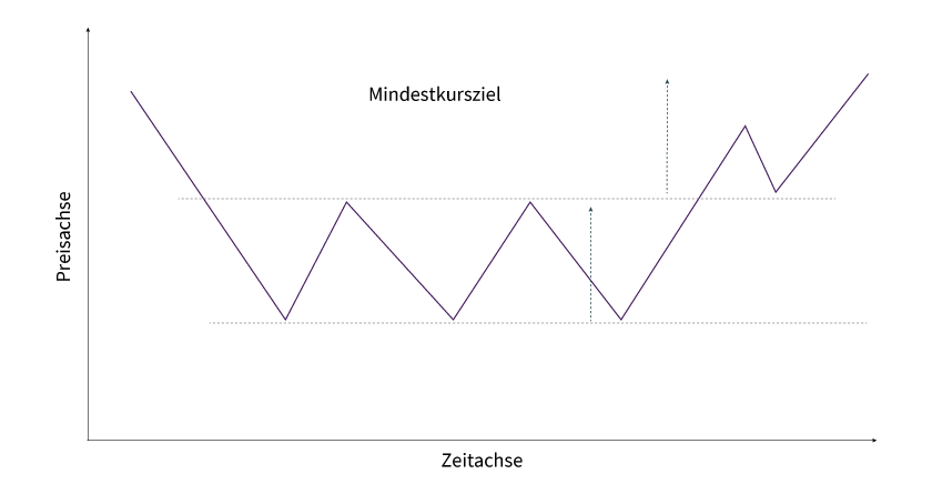 Prozyklisch agierende Anleger warten hingegen den Ausbruch aus der Formation ab und positionieren sich dann in Ausbruchsrichtung. In diesem Fall könnte ein anfänglicher Stop-Loss beispielsweise in der Nähe der Mitte der Range oder jenseits der gegenüberliegenden Range-Begrenzung gesetzt werden.