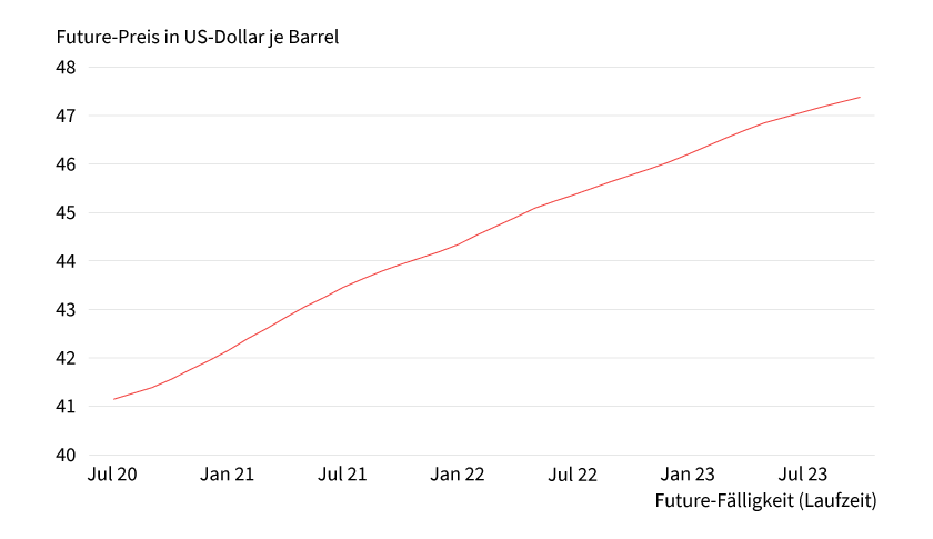 Grafik 1: Terminkurve Brent-Öl-Future im Juni 2020