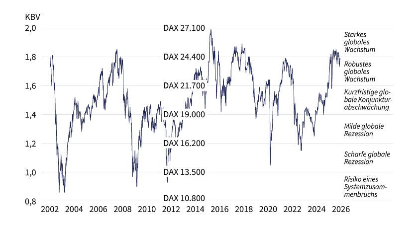 Grafik 3: DAX-Bewertungskennzahlen wie das KBV dürften sich 2026 seitwärts bewegen