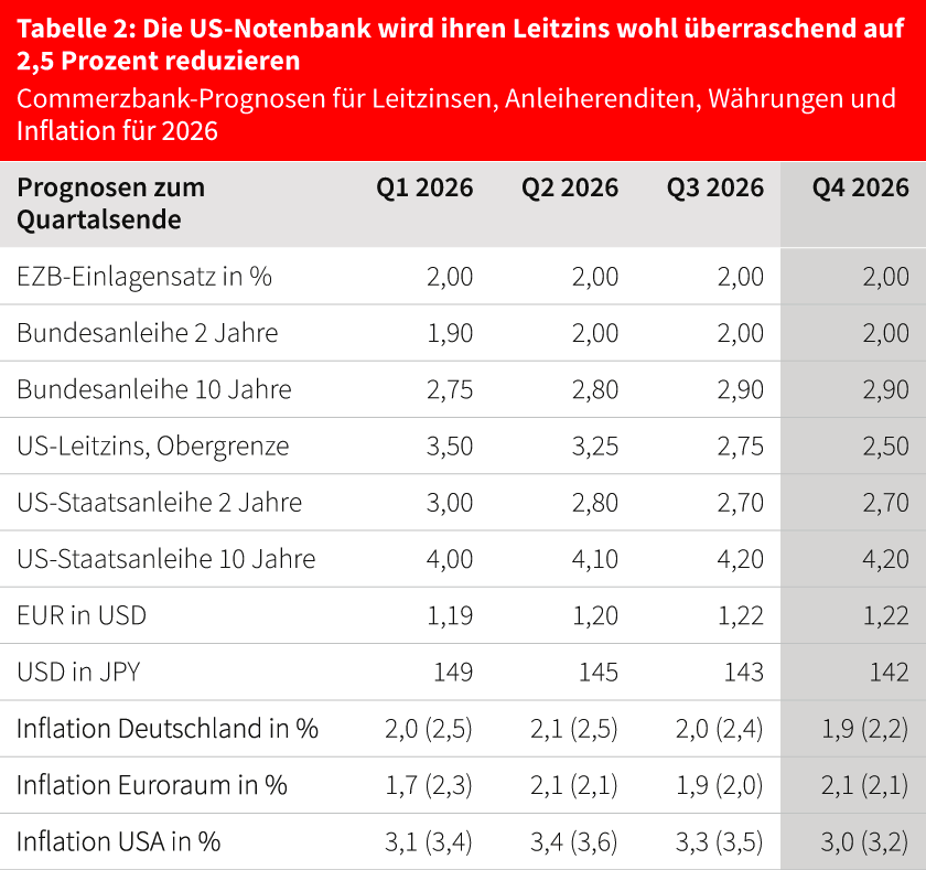Trend 3: Der wahrscheinlich auf 2,5 Prozent sinkende US-Leitzins entwickelt sich 2026 zu einem starken DAX-Bullenfaktor