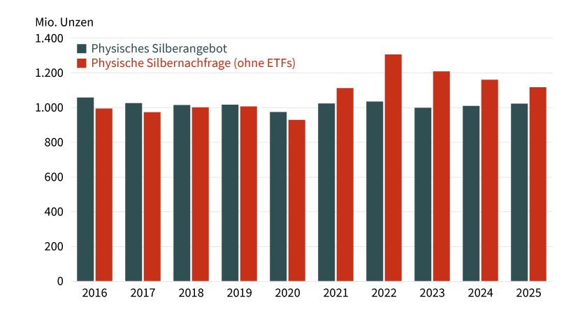 Gold, das keine politischen Einflussnahmen kennt, da es sich der Kontrolle durch Regierungen weitgehend entzieht, dürfte hiervon profitieren. Sowohl Zentralbanken von Schwellenländern als auch Gold-ETFs werden wohl ihre Goldbestände deshalb weiter aufstocken und damit für eine weiterhin robuste Nachfrage sorgen, wodurch die preisbedingt gedämpfte Schmucknachfrage ausgeglichen werden sollte. Wir prognostizieren einen Goldpreis von 4.800 US-Dollar je Feinunze Mitte des Jahres und von 4.900 US-Dollar zum Jahresende. Dabei sind zwischenzeitlich auch noch höhere Preisniveaus möglich.
